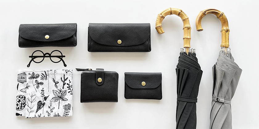 CINQではオリジナル商品の卸もしています。イタリアンレザーで作る財布や、日本の職人が作る晴雨兼用傘やブリキ缶、しおりなど。また、海外メーカーに依頼した、はさみ、ウールソックス、ワイヤーの鍋敷き、い草のマットなども。